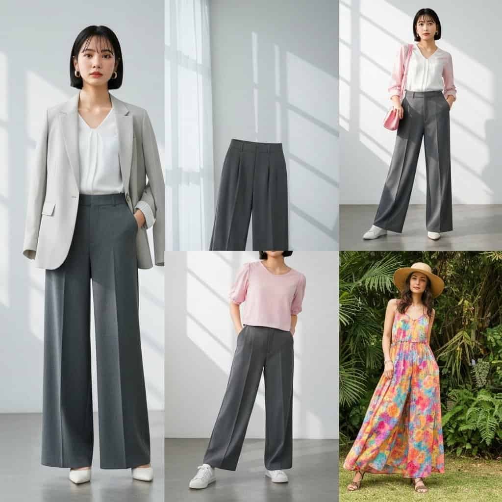 Wybór odpowiedniej góry i butów to klucz do stworzenia udanej stylizacji z kulotami. Przy luźnych i szerokich kulotach najlepiej sprawdzą się dopasowane topy, bluzki typu crop top lub wpuszczone w spodnie koszule. Pozwoli to podkreślić talię i uniknąć efektu „workowatości”. Jeśli zdecydujesz się na kuloty z wysokim stanem, możesz śmiało wybierać krótsze bluzki lub topy, które wyeksponują ten atut sylwetki. Jeśli chodzi o buty, kuloty o długości do połowy łydki świetnie wyglądają z botkami na obcasie lub butami za kostkę. Dłuższe modele, kończące się tuż nad kostką, będą dobrze komponować się ze szpilkami, sandałami na obcasie lub mokasynami.